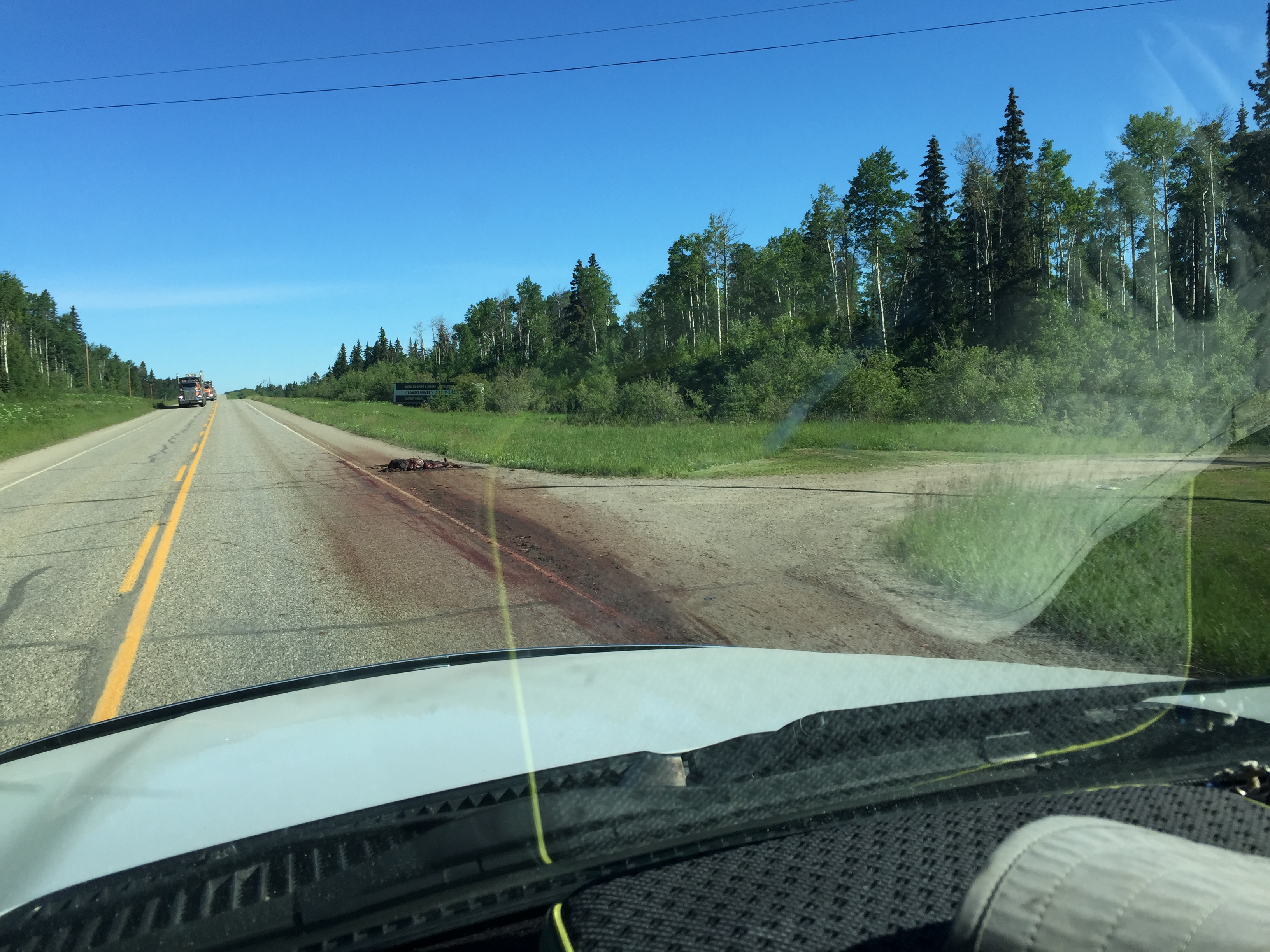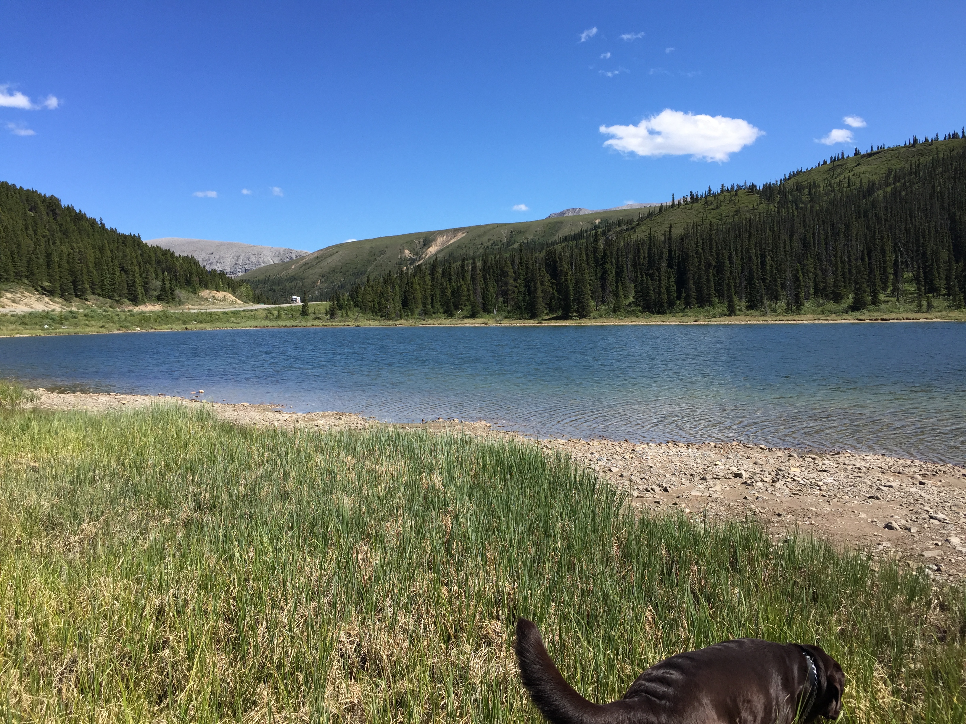 I have discovered in this remote Canadian backcountry that you don’t measure you trip in miles and don’t count on 250 miles taking 3.5-4 hours. In fact, it’s far from the truth! With the animals in the highway, dumb drivers, road construction, sight seeing, Diezel swim stops, bicyclists and all the other distractions you can add a couple hours to your normal drive time.