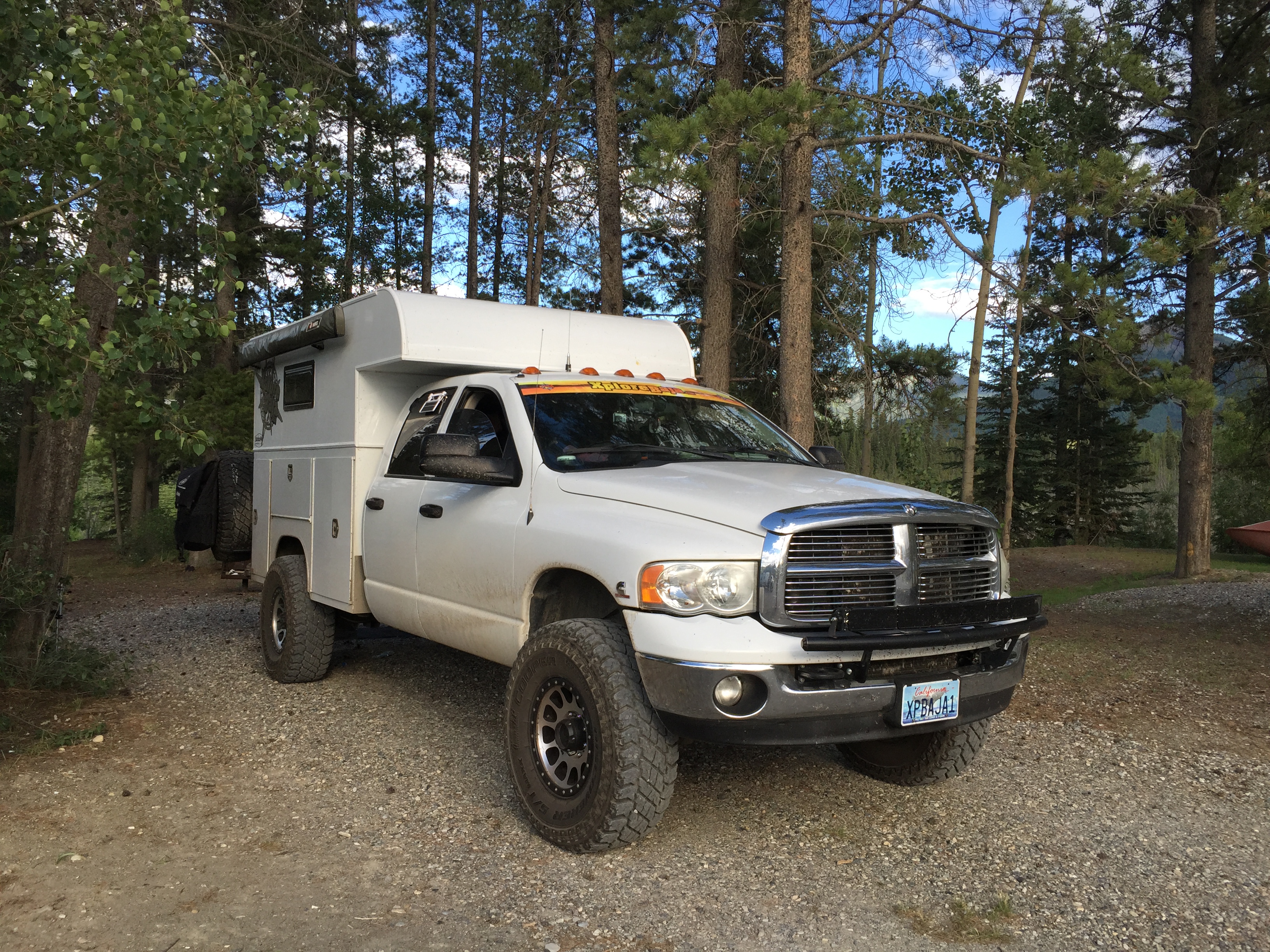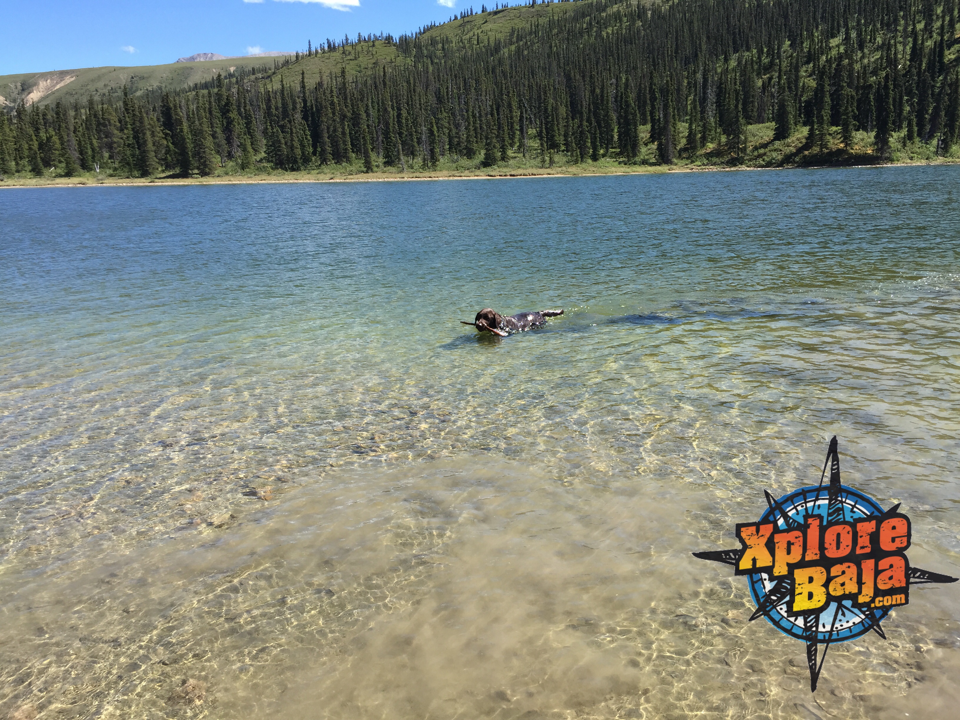 Today was a swim record day. Each time I slowed I saw Diezel’s head pop up in the backseat of the truck. All I have to do is open his door and he’s out of the truck pooping, peeing or testing how cold the water is…haha, he’s loving the Canadian backcountry for sure.
